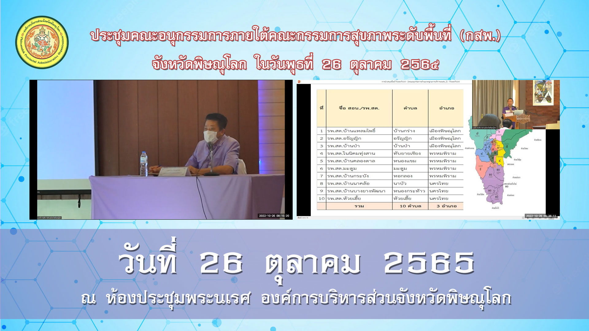 ประชุมคณะอนุกรรมการภายใต้คณะกรรมการสุขภาพระดับพื้นที่ (กสพ.) จังหวัดพิษณุโลก ในวันพุธที่ 26 ตุลาคม 2565